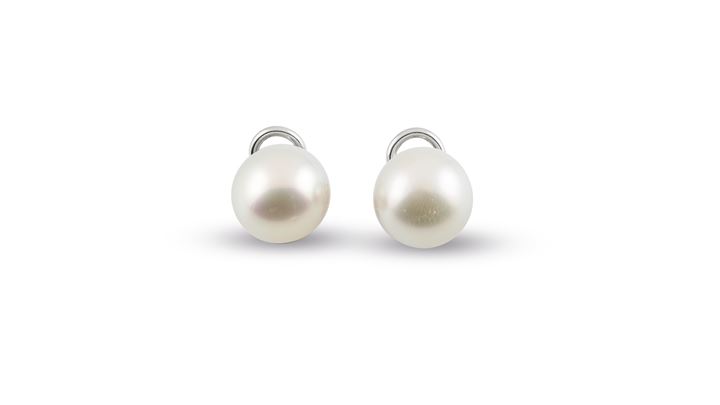 in oro bianco, a lobo, con due perle australiane del diam di mm 11,7 e 11,8
