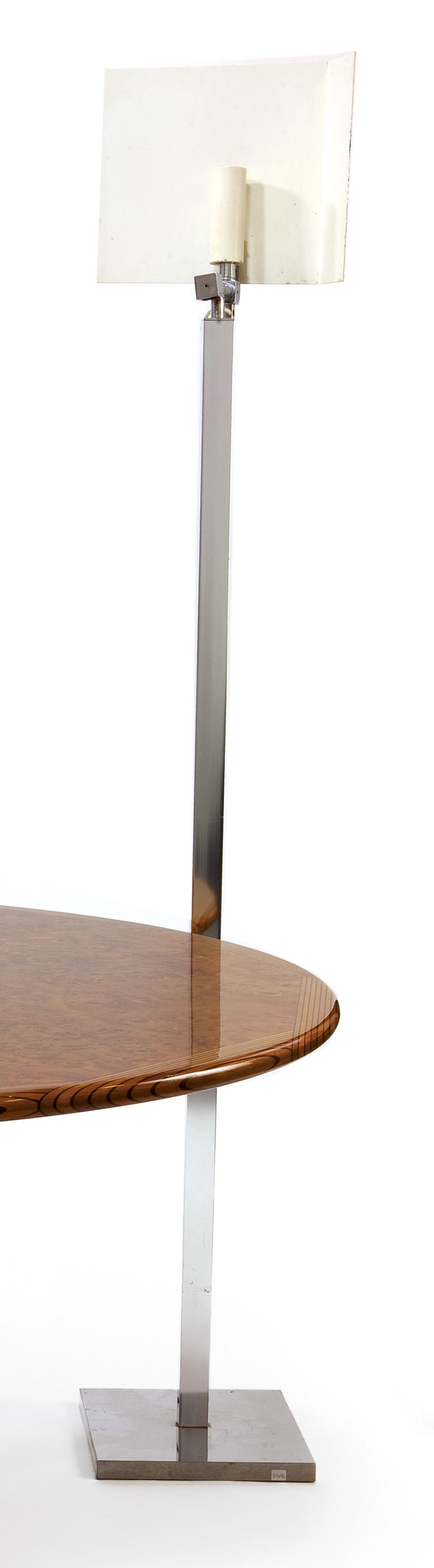 BROTTO ANGELO Guy Lampada a piantana con paralume orientabile in alluminio e cromo. Prod. Esperia, 1970 circa. h cm 170,5 Si ringrazia la ditta Esperia per le informazioni fornite.