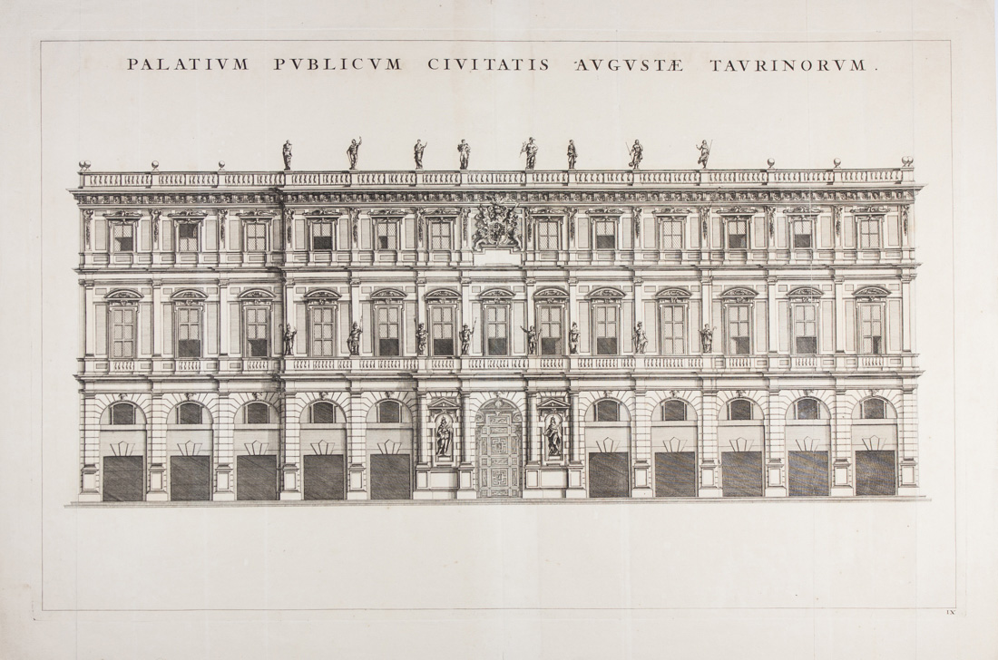 Incisione in rame. mm 440x770. Foglio: mm 510x755. Titolo in alto. Tavola n. IX. Da Novum theatrum Pedemontii et Sabaudiae (1726).