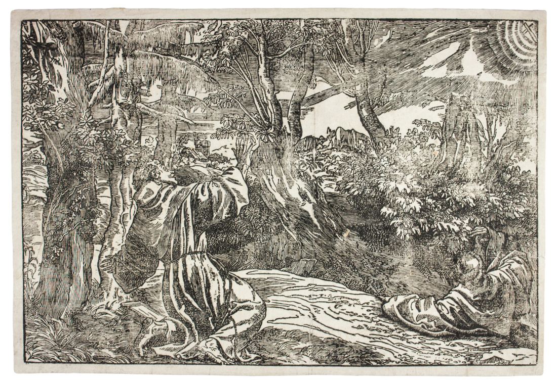 Nicolò Boldrini San Francesco riceve le stimmate. Xilografia. mm 283x422....