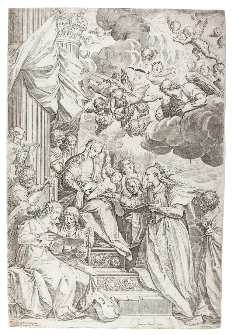 Bulino. mm 510x347. Bartsch, 98, DeGrazia,104. Da Paolo Veronese. Firmata e datata in basso a destra. Buona prova nel II stato su 2, con l'indirizzo di Giacomo Franco, su carta vergellata con filigrana "lettera P in doppio cerchio".