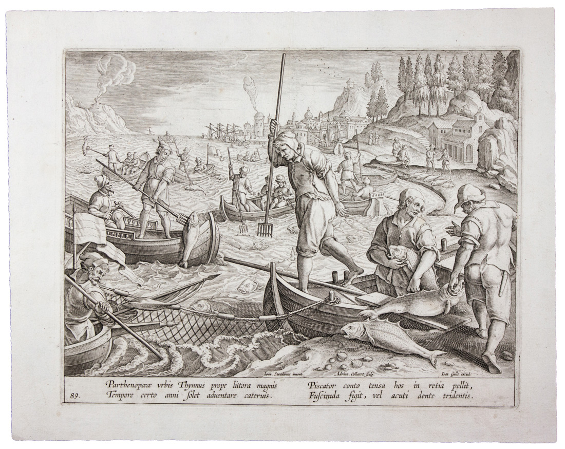 Adrian Collaert La pesca del tonno nel golfo di Napoli. Bulino. mm 205x260....