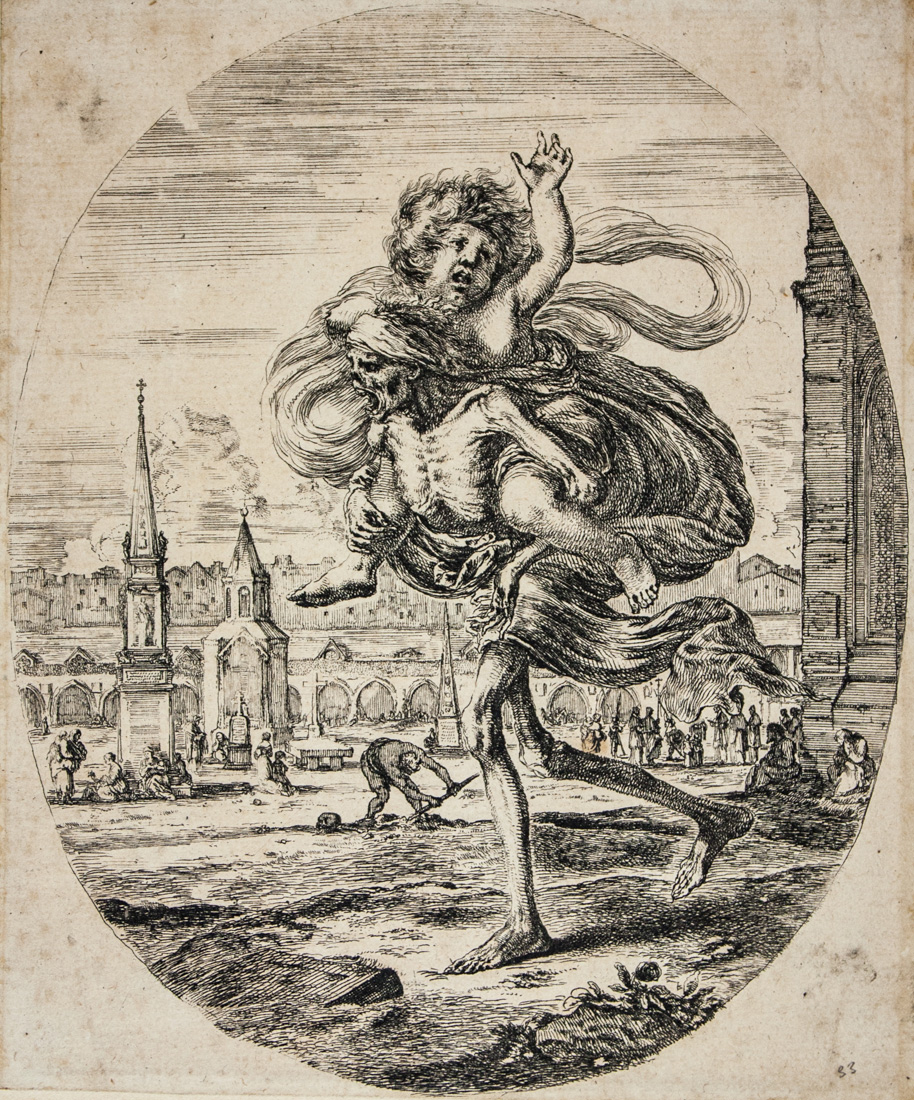 Stefano Della Bella La morte rapisce un fanciullo.1648 ca.Acquaforte e...