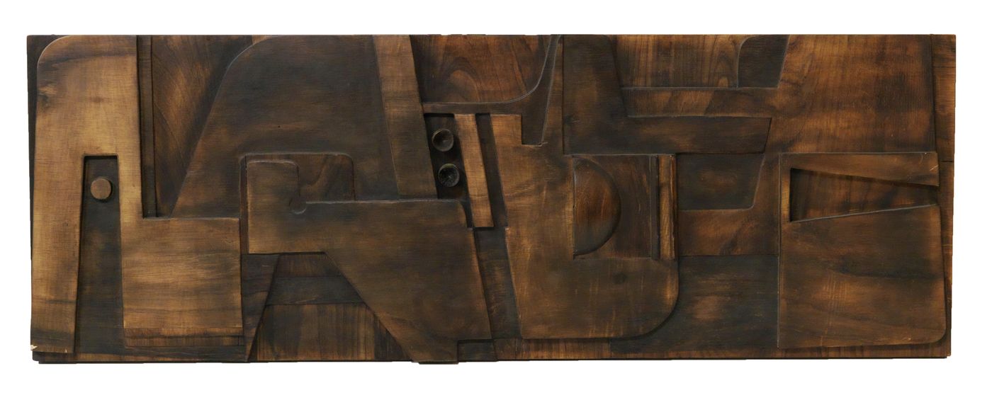 NERONE E PATUZZI GRUPPO NP2 Pannello decorativo in legno inciso. cm 170X60,5X6 Bibl.: Per informazioni sul gruppo NP2: E.Biffi Gentili ( a cura di) Eccentricity, Arti applicate a Torino 1945-1968. Fondazione per il libro, la musica e la cultura, pag. 250