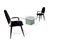 POLTRONE Coppia di poltroncine con telaio in metallo laccato. gambe in rovere...