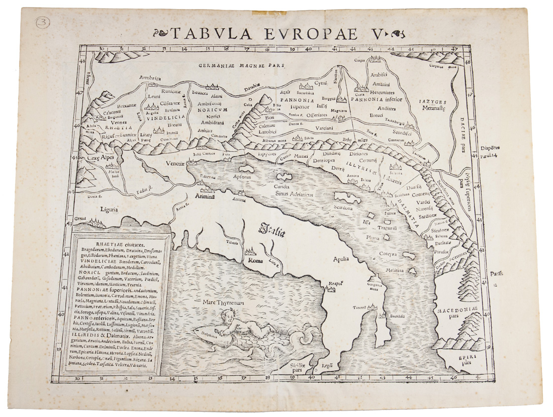 Sebastian Munster Tabula Europae V. Italia.1545Xilografia. mm 270x335....
