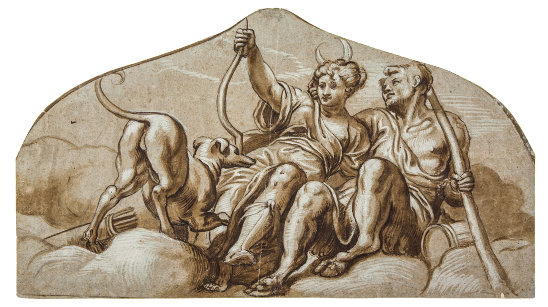Paolo Farinati Diana e Pan. Penna e inchiostro bruno, punta di pennello,...