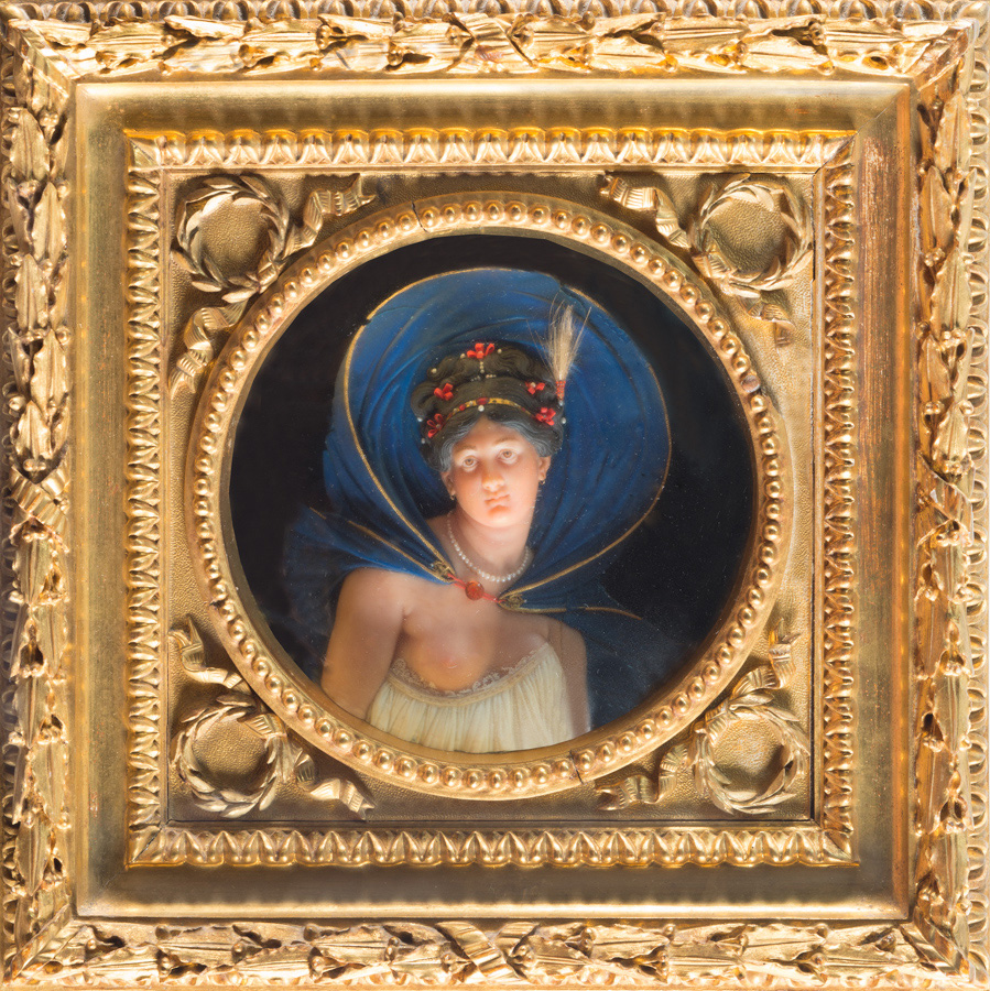 Rilievo in cere policrome, perline e pietre dure. Diametro: cm 11. Il ritrattino sembra in linea con la tradizione ceroplastica fiorentina che alla fine del XVIII secolo vide in Clemente Susini (Firenze 1754-1814) il suo massimo esponente. I lineamenti e la carica seduttiva della giovane donna richiamano la "Venerina" dei Medici, la cera anatomica a grandezza naturale e smontabile realizzata dal Susini fra il 1781 e il 1782 e conservata al Museo de La Specola: la giovane donna di grande avvenenza influenzò moltissimo gli artisti coevi che ne subirono il fascino eseguendo varie repliche e prendendola a modello per opere indipendenti.
