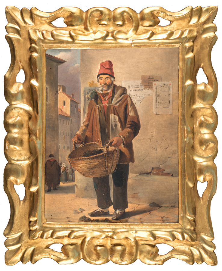 Scuola italiana del XIX secoloMendicante. Olio su tela. cm 33x25,5. Il...