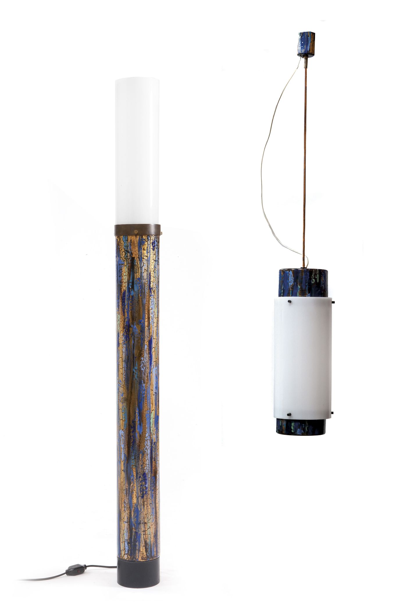 Lotto 881 | LAMPADA E LAMPADARIO Lampada e lampadario a sospensione in metallo smaltato...