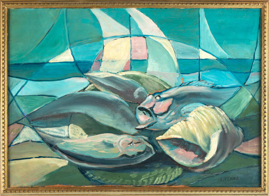 Lucio Venna Landsmann Natura morta con pesci. Olio su tela. cm 50x70. Firmato...