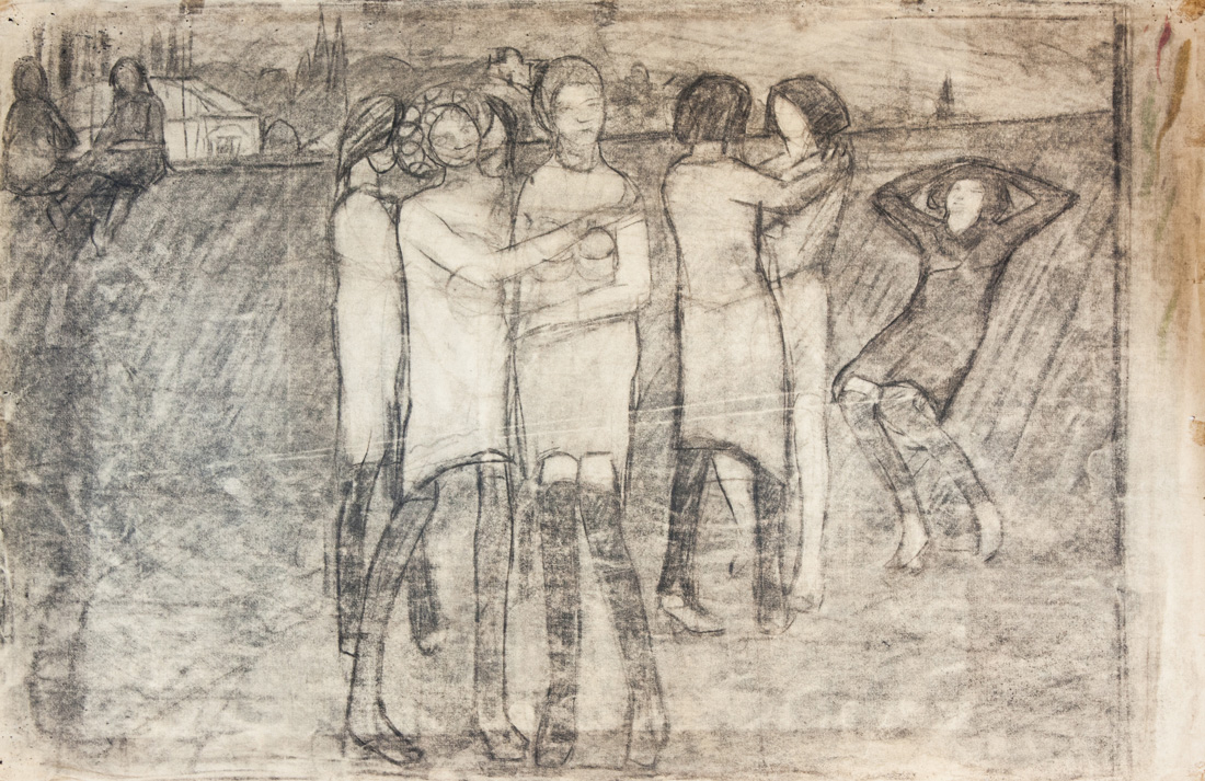 Moses Levy Figure femminili.1910 circa.Carboncino su carta. mm 495x750....
