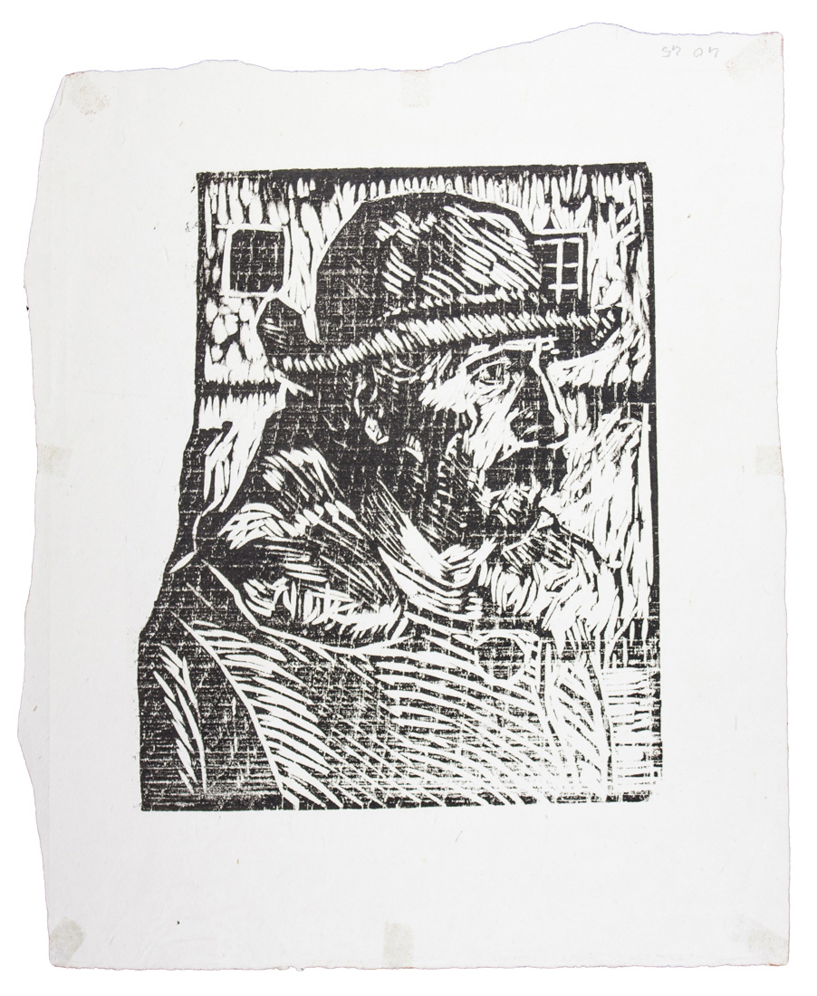 Moses Levy Uomo con cappello.1914Xilografia. mm 250x203. Foglio: mm 370x300....