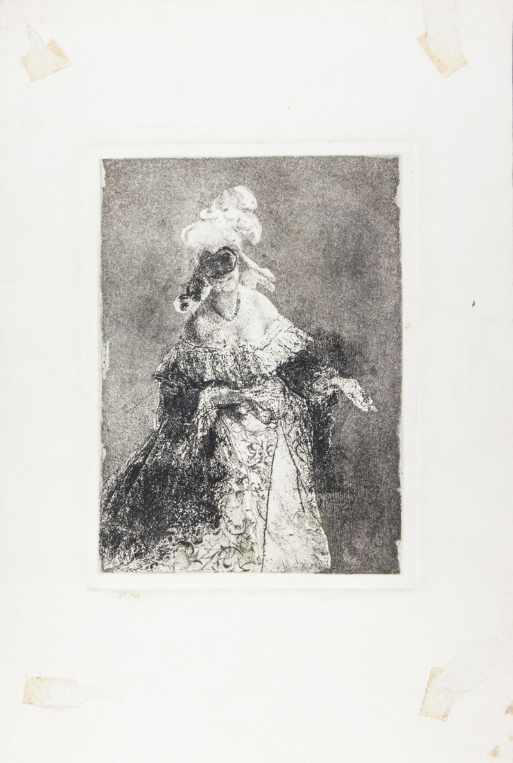Mosè Bianchi Due incisioni: Studio inedito. La maschera. - 1) Studio inedito....