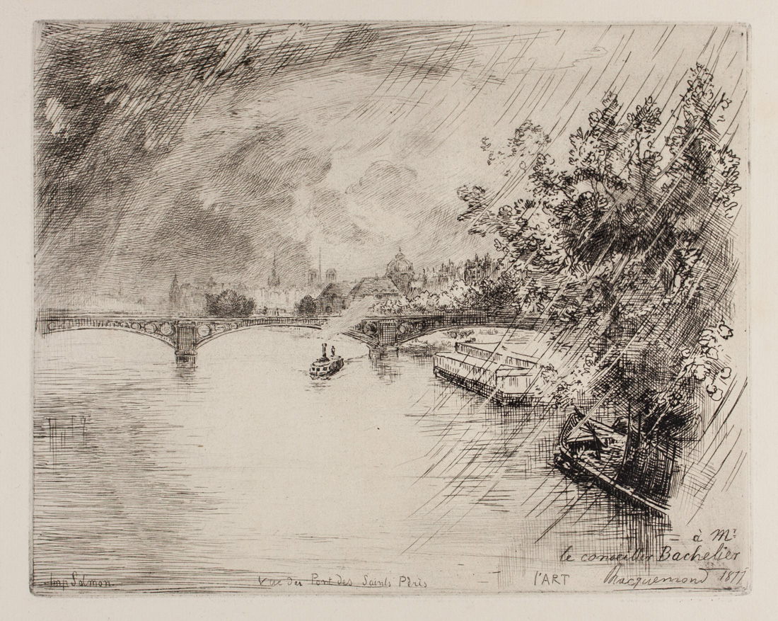 Félix Bracquemond Vue du Pont des Saints Perès.1877Acquaforte. mm 195x246....