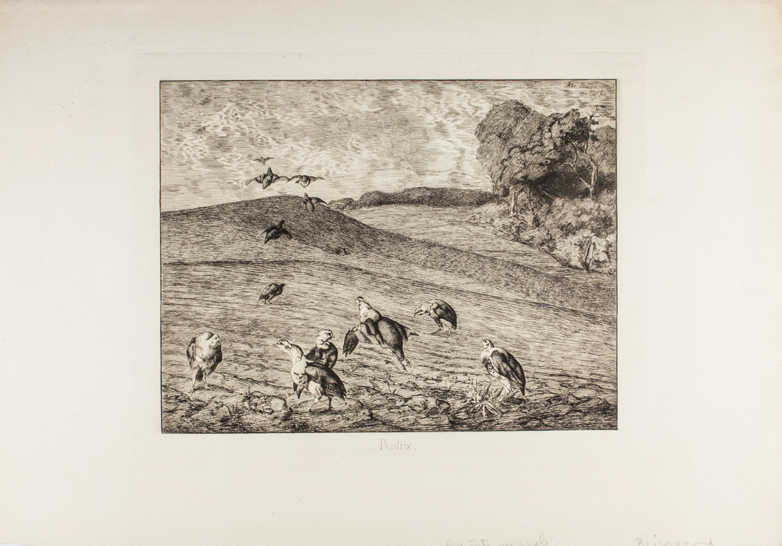 Félix Bracquemond Perdrix.1872Acquaforte. mm 266x325. Foglio: mm 350x510....