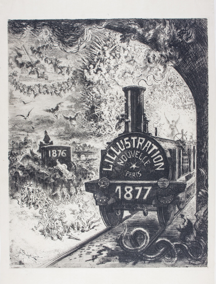 Félix Buhot L'enterrement du burin, frontispice pour L'lllustration...