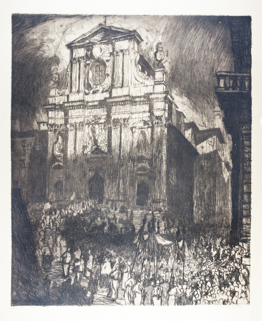 Acquaforte. mm 625x529. Foglio: mm 800x600. Pogliaghi/Chiappelli, 33. Firmata a matita in basso a destra. Titolata a matita in basso a sinistra.
