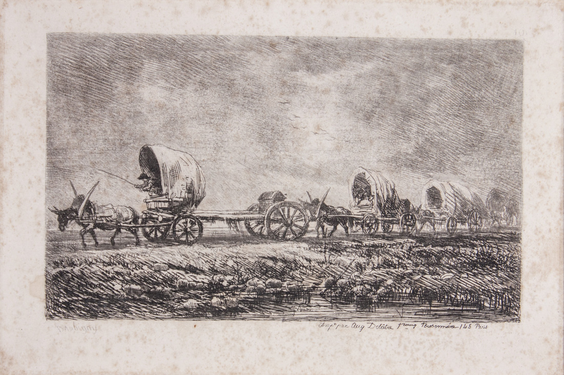 Charles François Daubigny Les charettes de roulage.1848Acquaforte. mm...