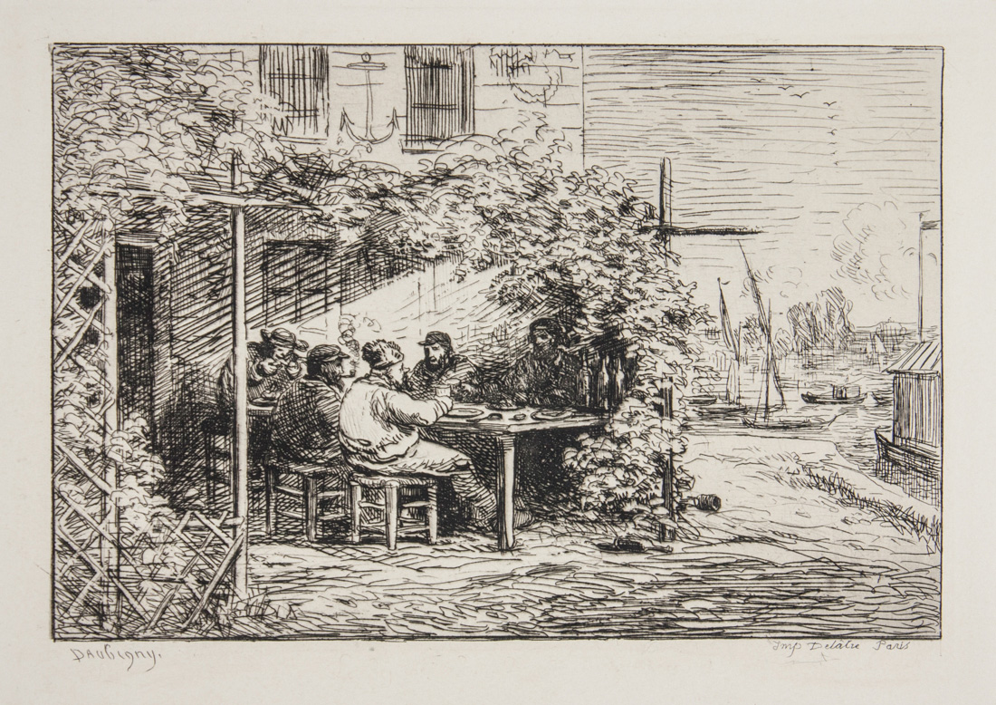 1) Le déjeuner du départ a asnières. Acquaforte. mm 113x118. Foglio: mm 350x465. Delteil 100. III stato/3. In basso a sinistra: "Daubigny." e a destra: "Imp. Delatre Paris". 2) L'emménagement au bottin (le mobilier du bateau). Acquaforte. mm 140x190. Foglio: mm 350x465. Delteil 101. III stato/3. In basso a sinistra: "Daubigny." e a destra: "Imp. Delatre Paris". 3) L'heritage de la voiture (les enfants a la voiture). Acquaforte su velina applicata. mm 130x181. Foglio: mm 315x445. Delteil 102. III stato/3. In basso a sinistra: "Daubigny." e a destra: "Imp. Delatre Paris".(3)