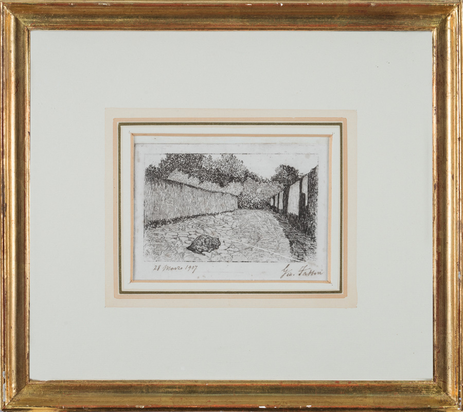 Acquaforte. mm 105x145. Baboni-Malesci, XXX. Margini non esaminati fuori dalla cornice. Esemplare in tiratura coeva su carta bianca liscia, firmato a penna "Gio. Fattori" e datato "28 Marzo 1907".