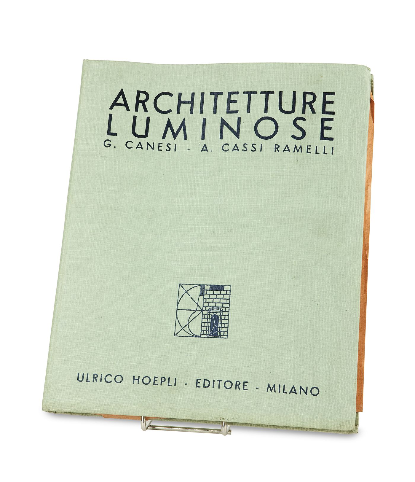 CANESI G., CASSI RAMELLI A. Architetture Luminose, Urlico Hoepli Editore 1934. Interessante repertorio iconografico per l’opera di Buffa, Albini, Marelli, Pulitzer, Muzio, Piacentini, Herbst, Brandt etc. e per la produzione delle ditte Fontana Arte, Venini, DIM, Texilar etc.