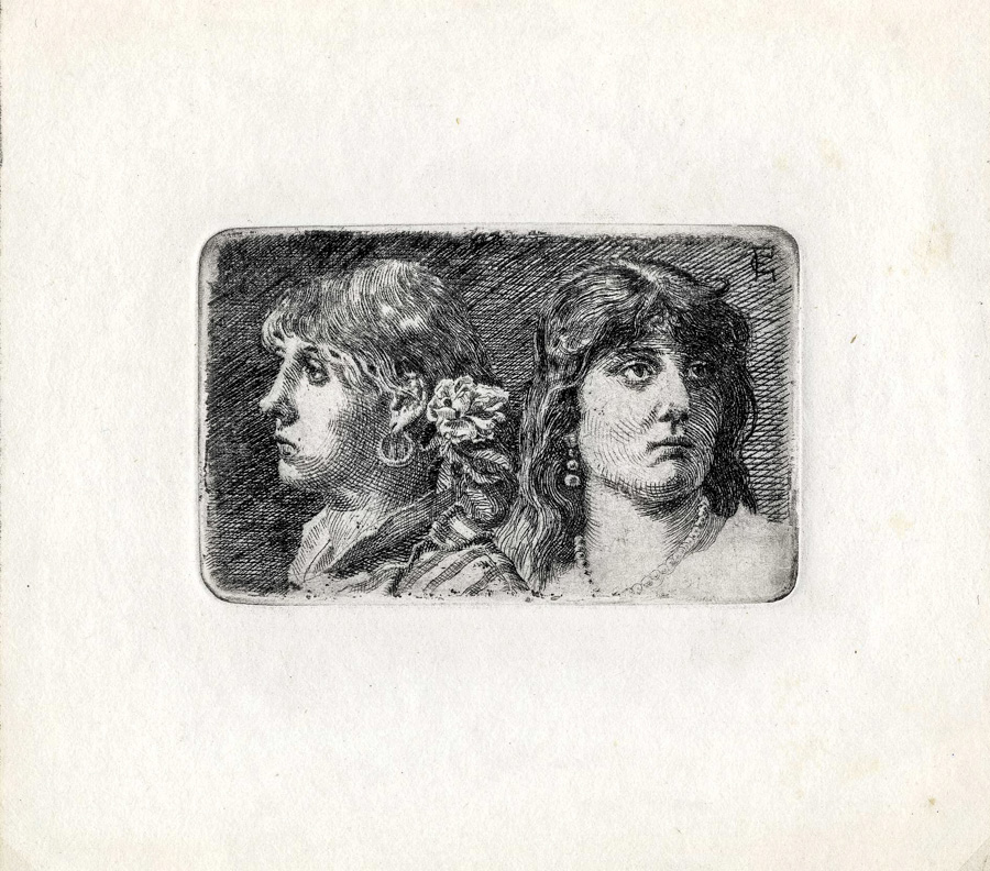 Fancesco Gioli Due teste femminili. Acquaforte. mm 62x98. Foglio: mm 150x164....