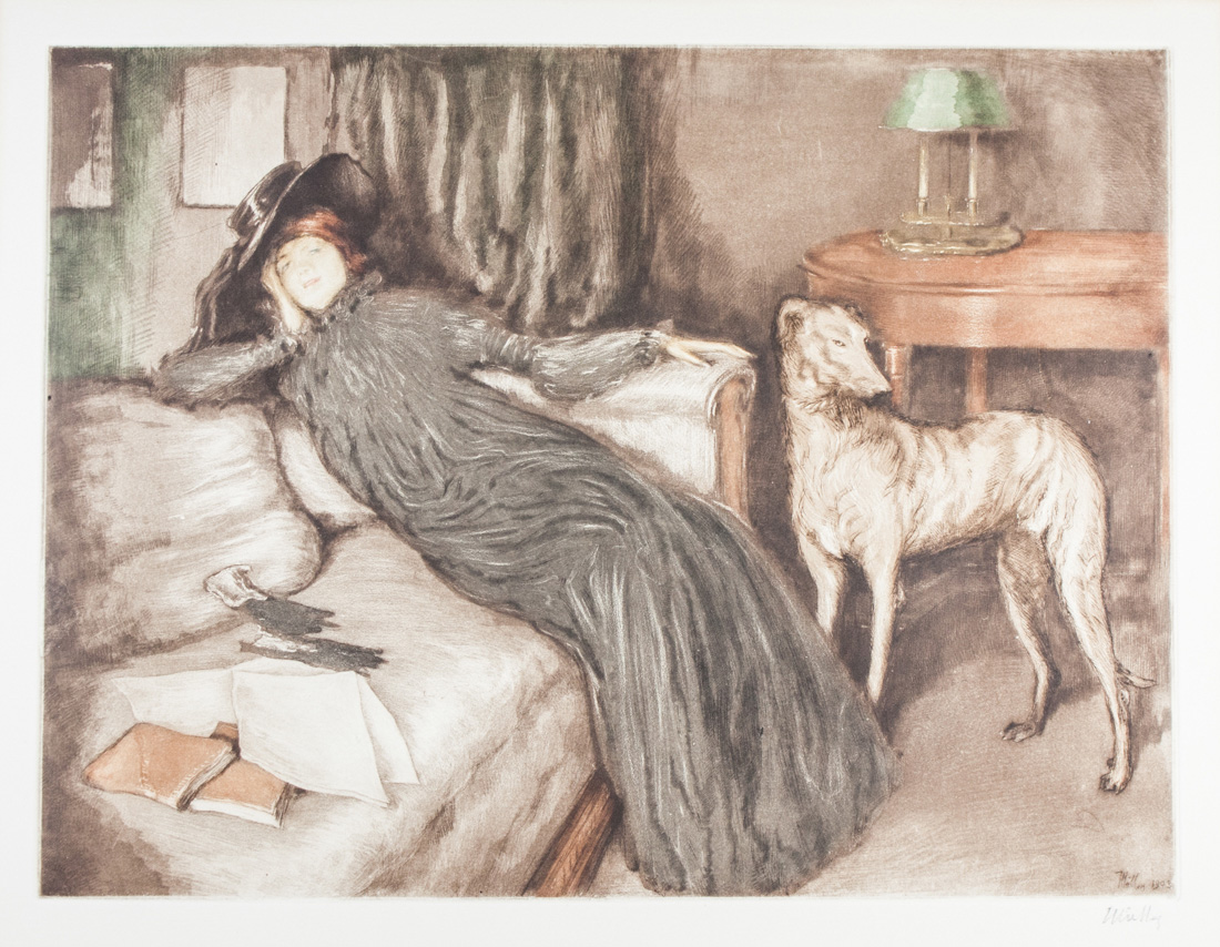 Alfredo Müller La Nonchalante.1903 Acquaforte e acquatinta a colori. mm...