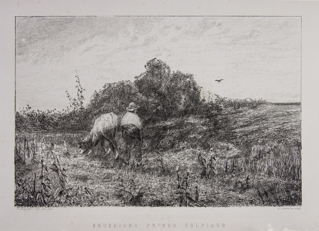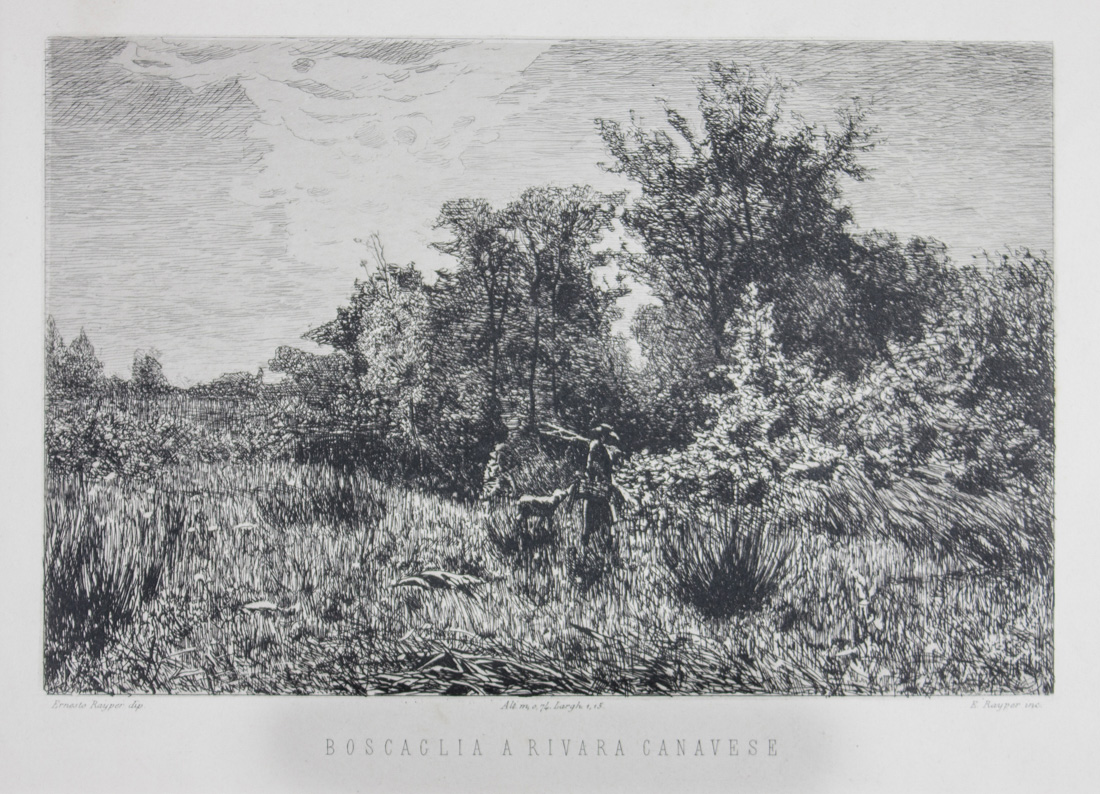 1) Brughiera presso Volpano. 1871. Acquaforte su velina applicata. mm 150x208. Foglio: mm 238x303. Giubbini pp. 266-267. Firmata nella lastra in basso a sinistra: “F. Rayper dip. ed inc.”, titolato in basso al centro. Indicazione dell'editore (Lovera) in basso a sinistra. 2) Boscaglia a Rivara Canavese. 1869 ca. Acquaforte. Parte incisa: mm 136x217. Foglio: mm 210x284 . Giubbini pp. 275-277. Titolata in basso al centro. Firmata in basso ai lati. 3) Settembre presso Rivara. 1872. Acquaforte su velina applicata. 252x188. Foglio: mm 375x242. Giubbini p. 275. Titolata in basso al centro, firmata in basso a sinistra. Indicazioni editoriali in basso a destra.(3)