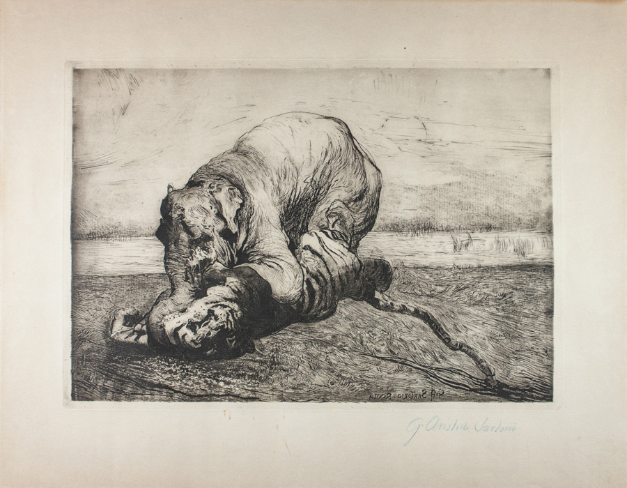 Giulio Aristide Sartorio Lotta regale.1900 ca.Fotoincisione e acquaforte. mm...