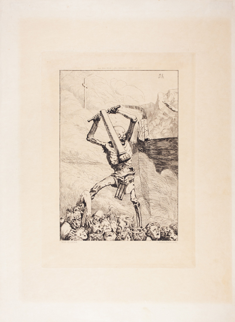 Acquaforte. mm 200x245. Foglio: mm 330x373. beringer 106/2. Si aggiunge: Max Klinger. Dritte Zukunft. Acquforte. mm 230x168. Foglio: mm 353x260. singer 48 IX/IX. Sesta tavola dal ciclo Eva und die Zukunft, Opus III, 1879. (2)