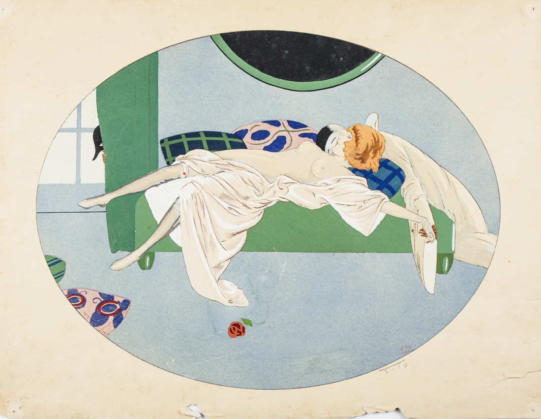 Tito Tre soggetti erotico galanti.19253 incisioni colorate a pochoir. mm...