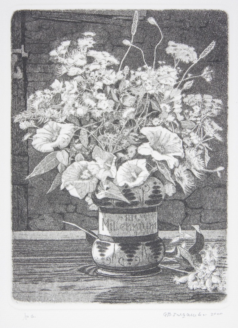 1) Vasetto di fiori. 2000. Acquaforte. mm 190x140. Foglio: mm 500x350. Firmato a matita in basso a destra. In basso a sinistra, sempre a matita, "p.d.a.". 2) Fiori di campo. 1996. Acquaforte. mm 190x340. Foglio: mm 350x409. Firmato a matita in basso a destra. In basso a sinistra, sempre a matita, "p.d.a.". 3) Nel bosco. 1999. Acquaforte. mm 160x205. Foglio: mm 350x390. Firmato a matita in basso a destra. In basso a sinistra, sempre a matita, "p.d.a.". 4) Cortile sotto la neve. 2000. Acquaforte. mm 135x195. Foglio: mm 250x345. Firmato e datato a matita in basso a destra. In basso a sinistra, sempre a matita, numerato XV/XV. (4)