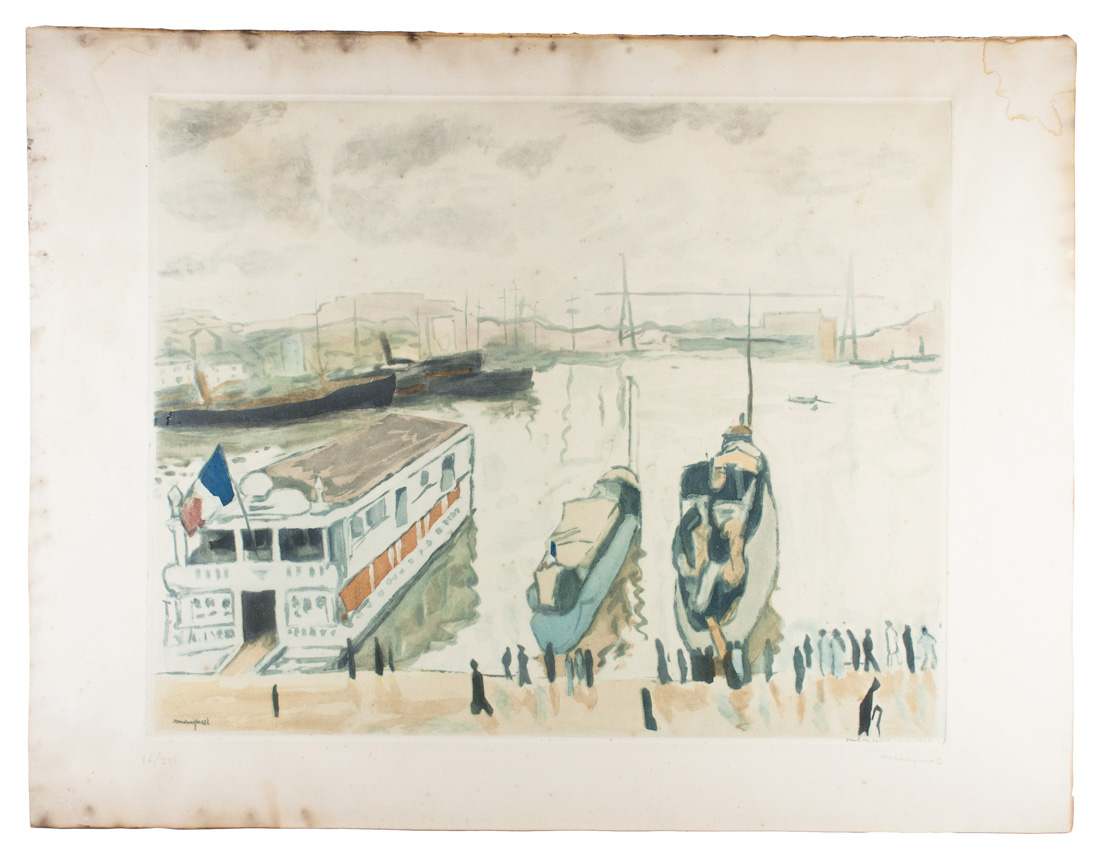 Acquatinta a colori. mm 400x500. Foglio: mm 495x650. Nella lastra in basso ai lati: "Marquet - Gravé par Jacques Villon 1924". Numerata a matita "16/200" e firmata a matita da Marquet.