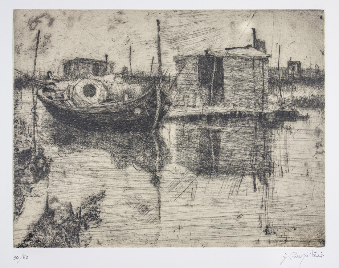 1) Pescatore Buranello. 1982. Acquaforte. mm 173x135. Foglio: mm 350x250. Firmato a matita in basso a destra: in basso a sinistra, sempre a matita, "prova d'artista". 2) Laguna. 1983. Acquaforte. mm 186x245. Foglio: mm 34x500. Firmato a matita in basso a destra. Numerato a matita in basso a sinistra: 30/50. 3) Toeletta. 1983. Puntasecca. mm 205x150. Foglio: mm 350x265. Firmato a matita in basso a destra. 4) Pescarenico. 1984. Acquaforte. mm 100x210. Foglio: mm 345x505. Firmata a matita in basso a destra. Numerata a matita in basso a sinistra: XXI/XXV. 5) Studio per mia madre. 1986. Puntasecca. mm 195x196. Foglio: mm 500x350. Firmato a matita in basso a destra. Numerato a matita in basso a sinistra: 27/30. 6) Viole nel bicchiere. 1986. Acquaforte e acquatinta. mm 210x150. Foglio: mm 505x350. Firmato a matita in basso a destra. Numerato a matita in basso a sinistra: XIX/XXV. 7) La lumaca. 1987. Acquaforte. mm 82x100. Foglio: mm 265x195. Firmato a matita in basso a destra: in basso a sinistra, sempre a matita, "p.d.a.". 8) Il Resegone. 1991. Acquaforte. mm 144x209. Foglio: mm 350x500. Firmato a matita in basso a destra. Numerato a matita in basso a sinistra: XXI/XXV. (8)