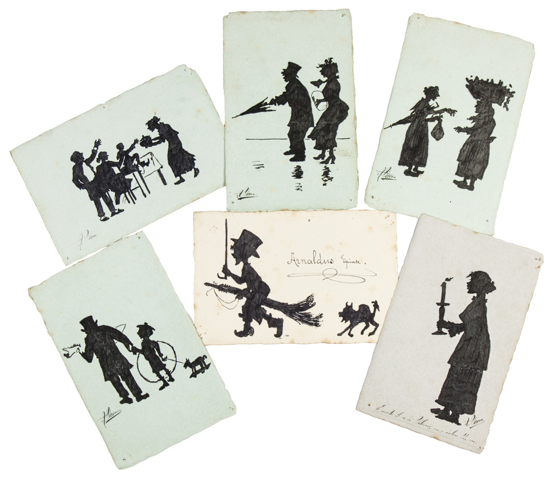 Arnaldo Sacco (Inizio sec. XX )Lotto di 6 cartoline a silhouette. 1900...