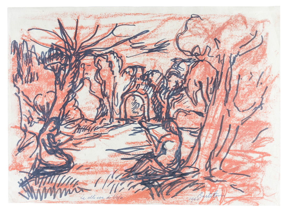 Luigi Bartolini Le allieve di Vejo.1960Pastello e inchiostro su carta avana....