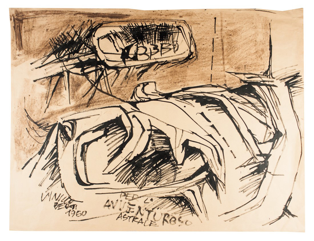 Vinicio Berti Per l'avventuroso astrale.1960Inchiostro su carta. mm 440x580....