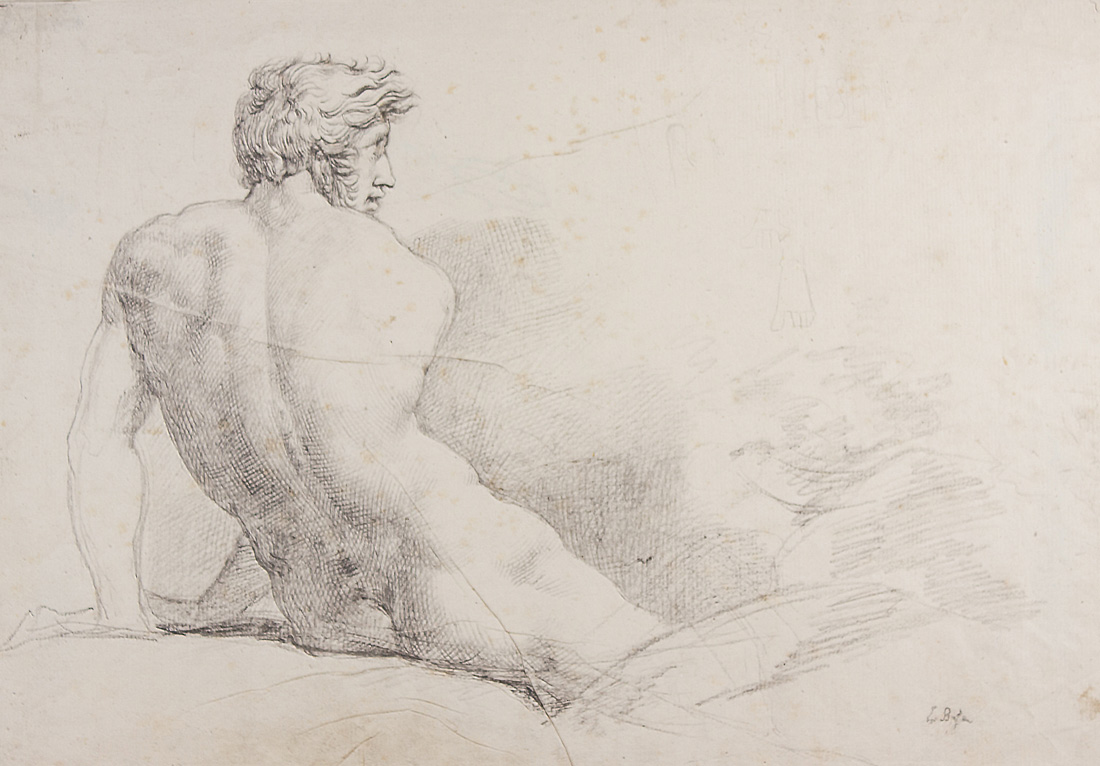 Eugenio Bosa Studio di nudo virile di spalle. Matita di grafite su carta...