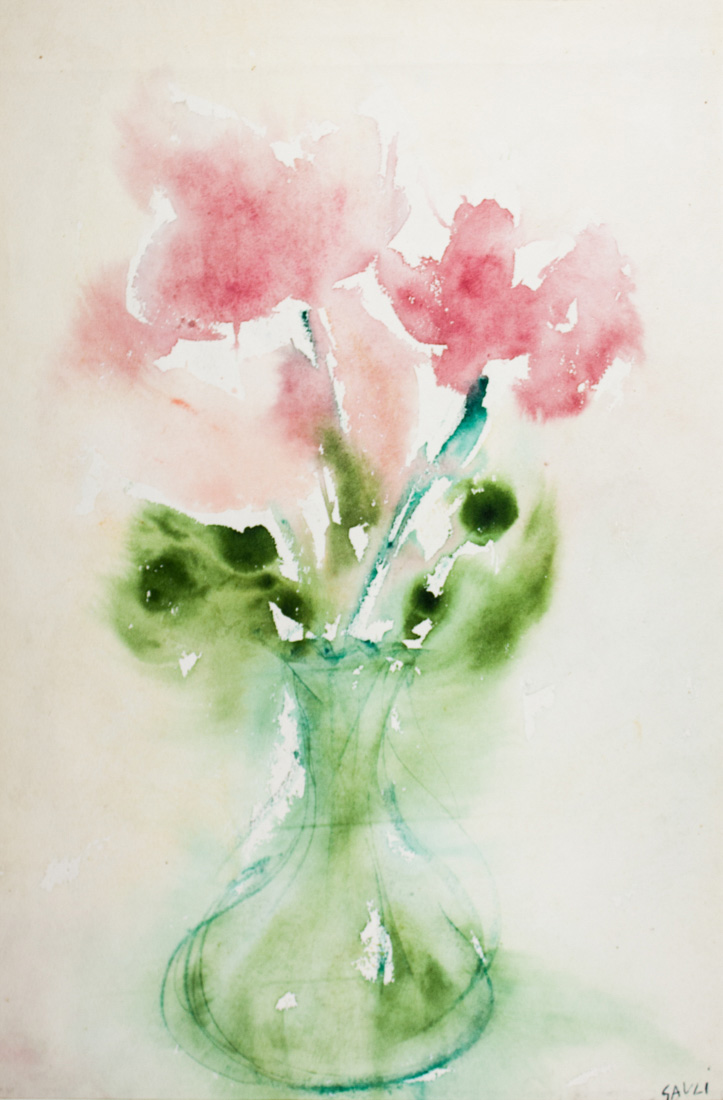 Piero Gauli Fiori nella bocietta verde. Acquerello su carta. mm 440x300....
