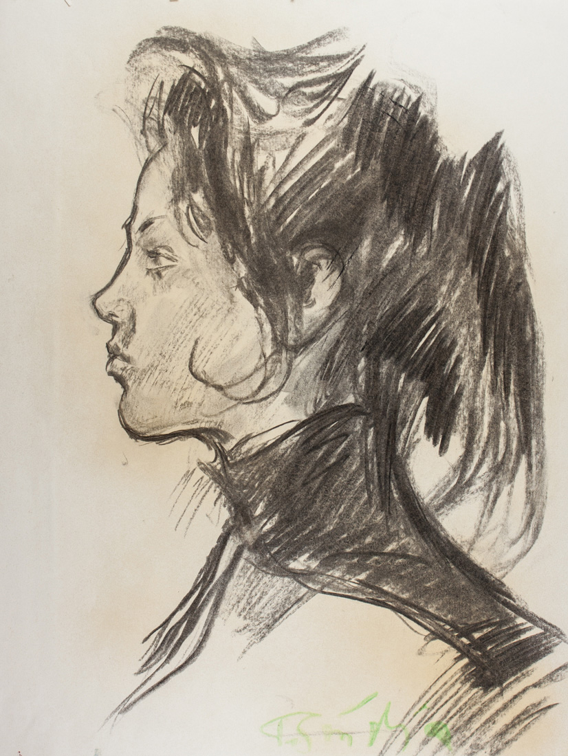 Paulo Ghiglia Profilo femminile.1960 ca.Carboncino su pagina d'album. mm...