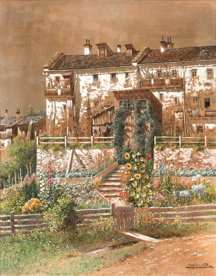 Vincenz Havlicek Case con giardino.1905Tempera su carta applicata su tela. mm...