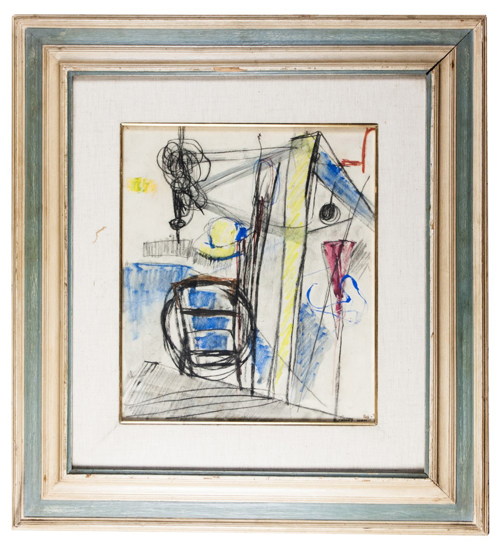 Matita nera e acquerello su carta incollato su tela. mm 355x305. Firmato a penna in basso a destra. L'opera si vende correda di autentica dell'Archivio Santomaso.