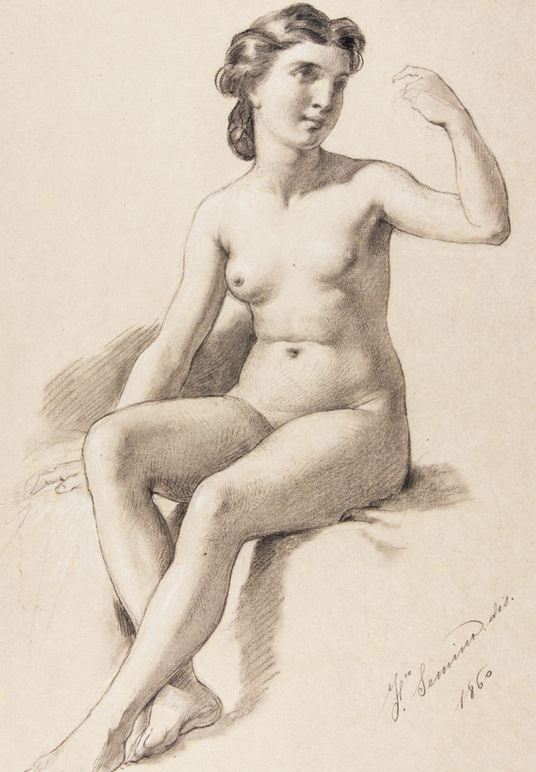 Francesco Semino Studio di nudo femminile.1860Matita di grafite su carta. mm...