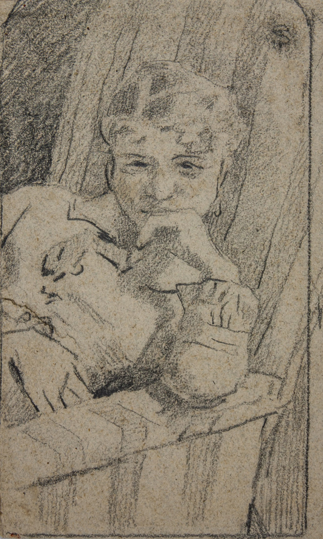 Telemaco Signorini Ritratto di giovane donna. Matita nera su carta grigia. mm...