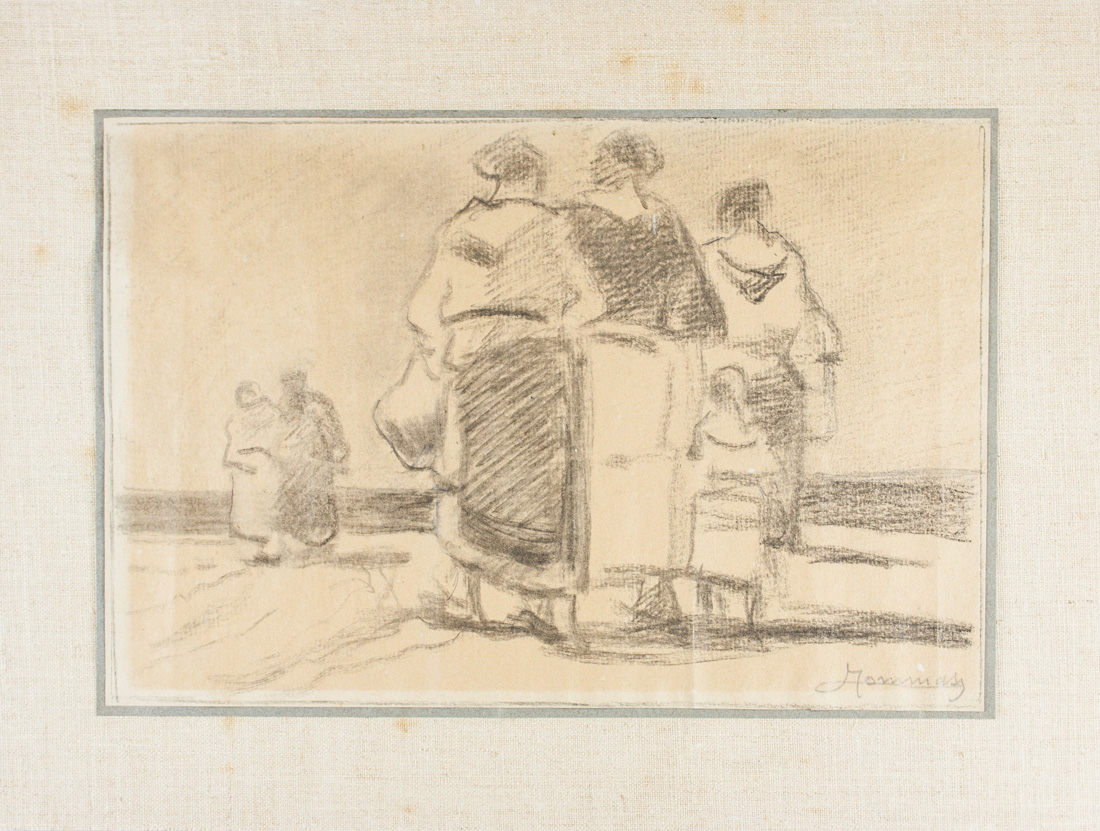 Ludovico Tommasi Popolane in cammino. Matita nera su carta. mm 210x300....