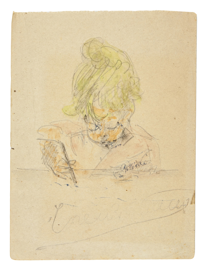 Lorenzo Viani Scolara che scrive.1921 ca.Matita su carta. mm 180x120....