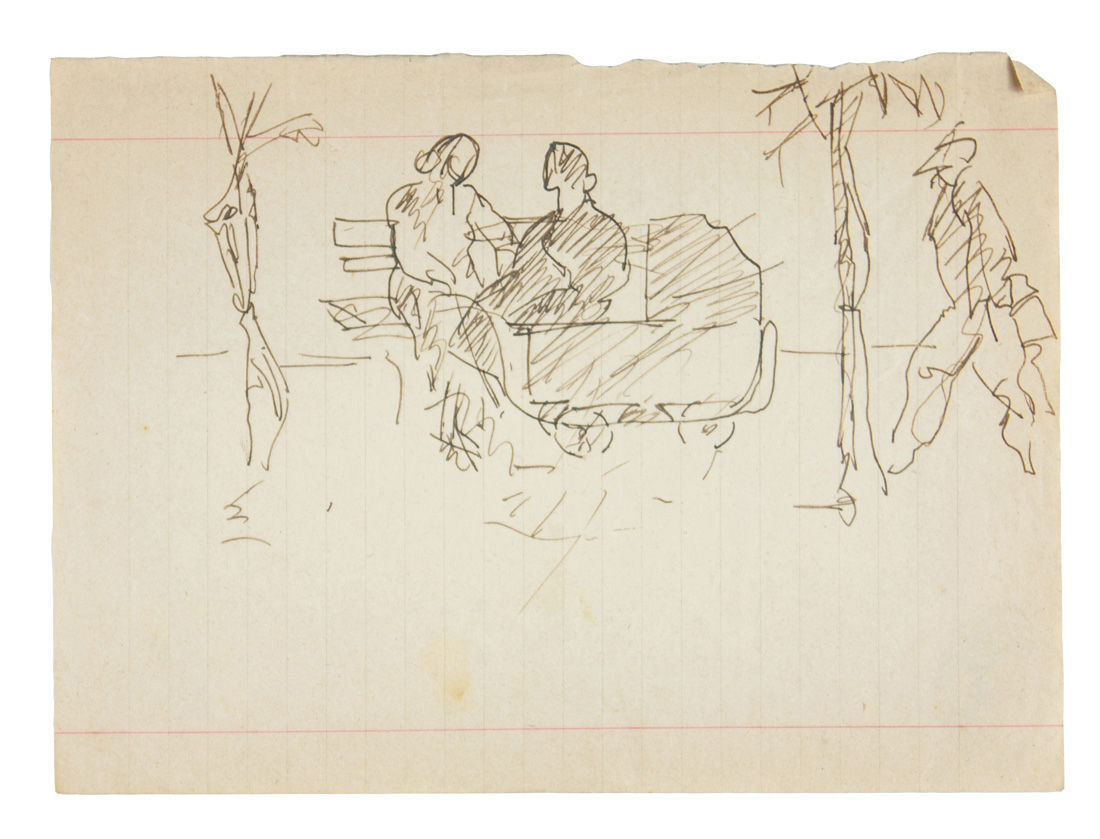 Penna e inchiostro su carta a righe. mm 145x205. Provenienza: Galleria La Navicella.
