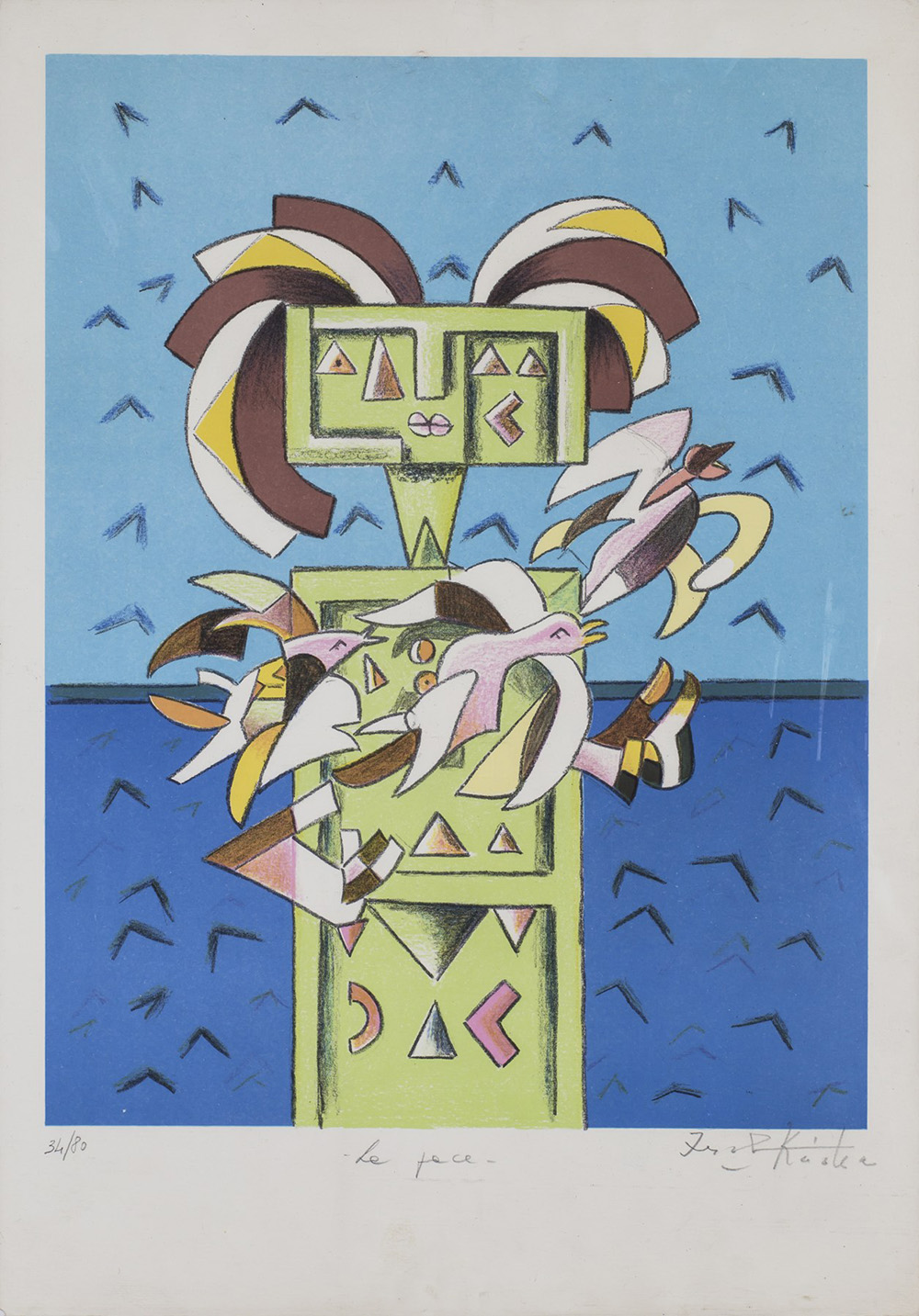 IBRAHIM KODRA (1918-2006) La Pace Litografia Cm 50x35 Firma, titolo e...