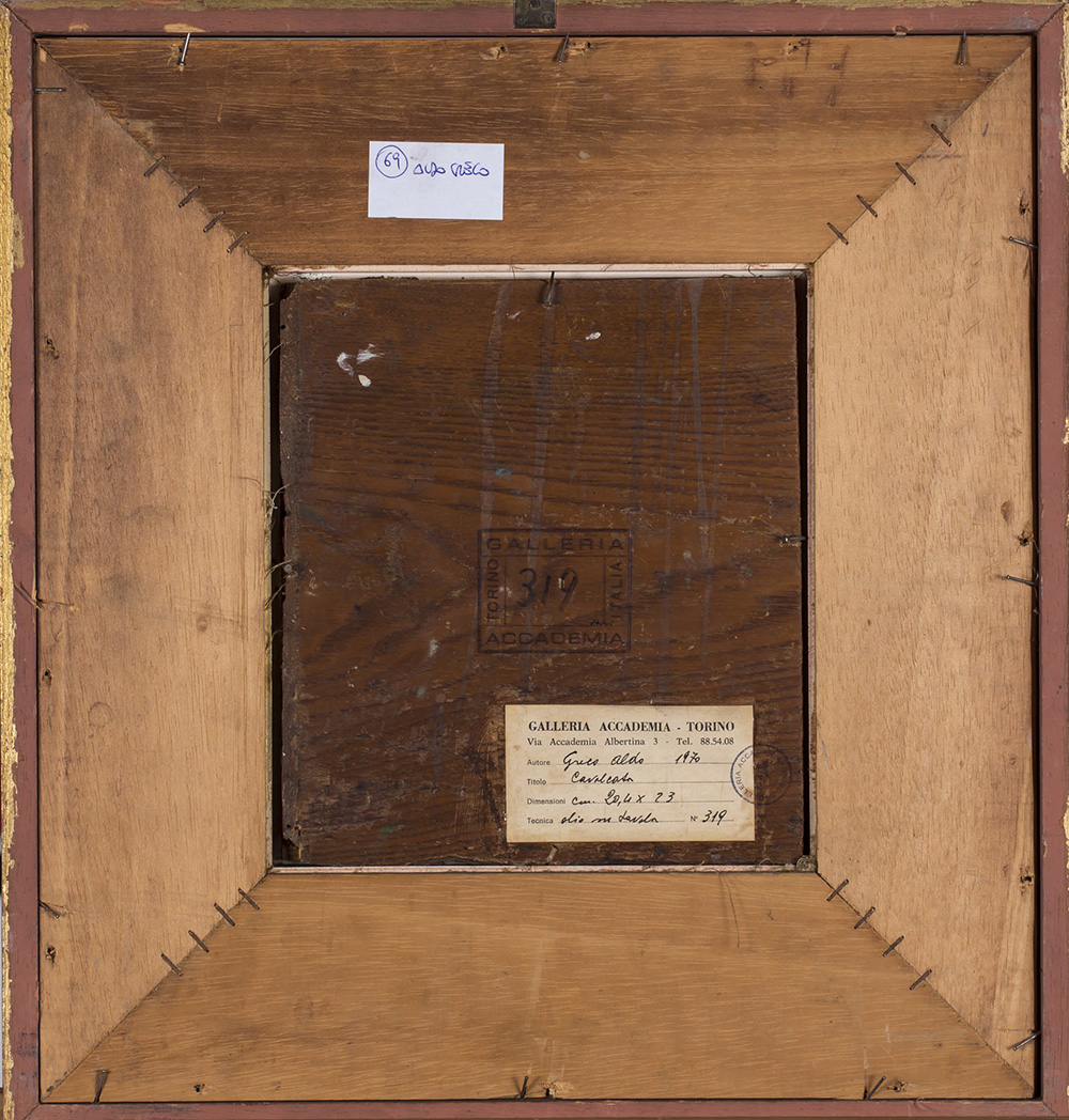 Etichetta e timbro della Galleria d'Arte Accademia (TO) al retro con relativo numero d'inventario